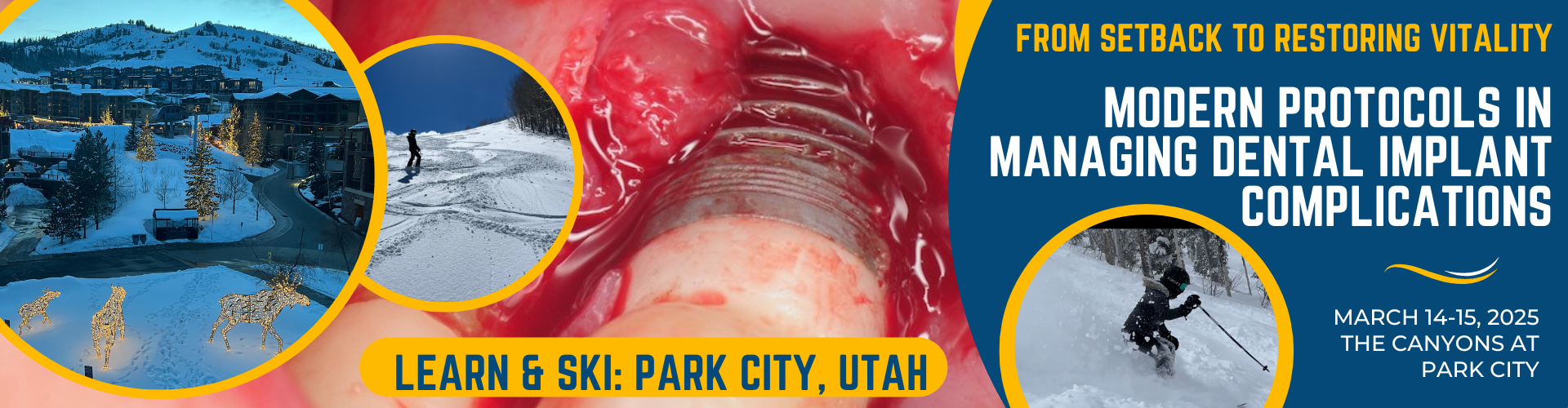 Join us for an unforgettable experience at our “Learn & Ski” course in stunning Park City, Utah! This unique event combines cutting-edge dental education with exhilarating outdoor fun. Delve into the latest treatment protocols for dental implant complications, including groundbreaking insights on peri-implantitis and comprehensive management strategies. Led by field experts, our interactive sessions offer valuable knowledge in a picturesque winter wonderland. After learning, hit the slopes for world-class skiing or enjoy a variety of family-friendly activities. Elevate your expertise and create lasting memories in the heart of Park City!